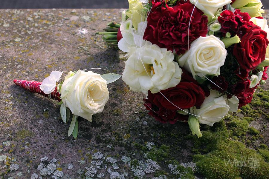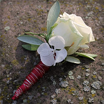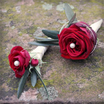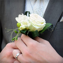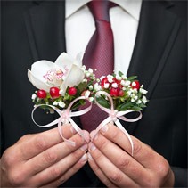 Ein eleganter Hochzeitsanstecker für den Bräutigam und auch für den Trauzeugen sind ein schönes Schmuck-Detail und nicht mehr wegzudenken. Der Bräutigam trägt diesen Reversschmuck in Form einer kleinen Blume an seinem Anzug, die natürlich auf den Brautstrauß abgestimmt ist. Mittlerweile ist es auch Brauch den Hochzeitsgästen, sowie Brautvater und Bräutigamsvater einen kleinen Hochzeitsanstecker bereitzustellen - so tragen auch die Gäste einen Teil des Blumenschmucks.