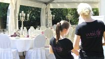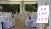 Hochzeitsdekoration im großen Zelt im