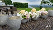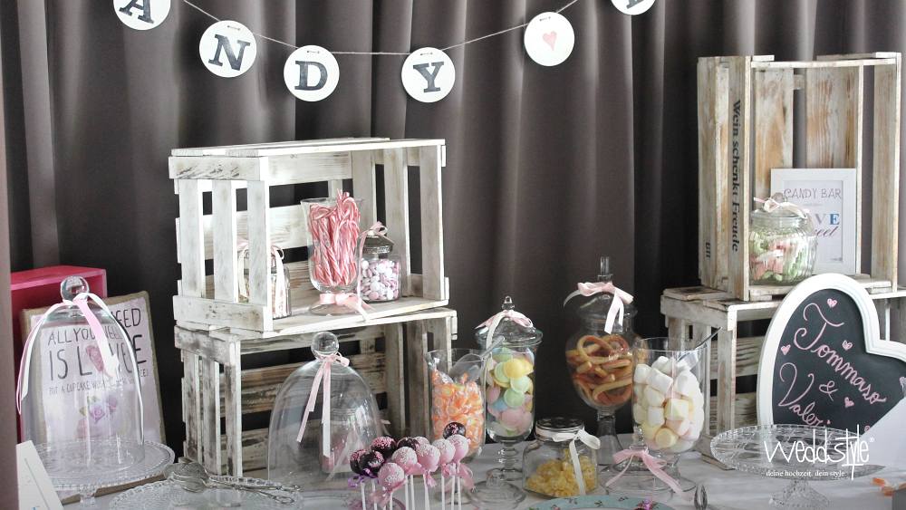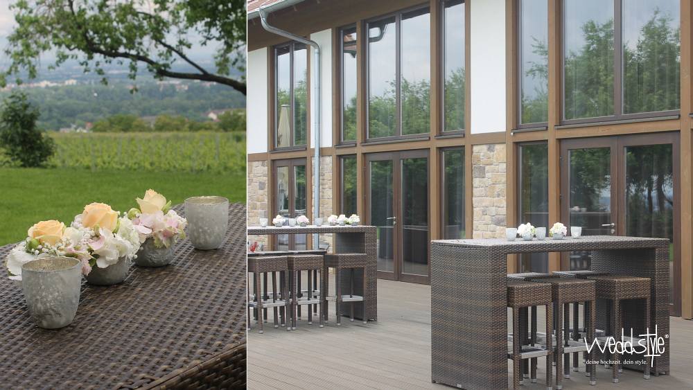 Die Hofscheune auf dem Hofgut Laubenheimer Höhe ist bekannt und sehr beliebt bei unseren Hochzeitspaaren. Der atemberaubende Ausblick der Laubenheimer Höhe lud zu einer anmutigen und stilvollen Hochzeitsdekoration des Weddstyle-Teams ein. Die Tischdekoration und Floristik von Weddstyle wurde selbstverständlich in einem perfekt aufeinander abgestimmten Design umgesetzt. Die Farben des Sommers, der Felder und Wiesen fanden sich in der liebevoll gestalteten Floristik wieder. Das i-Tüpfelchen bildete die farblich abgestimmte Candybar.